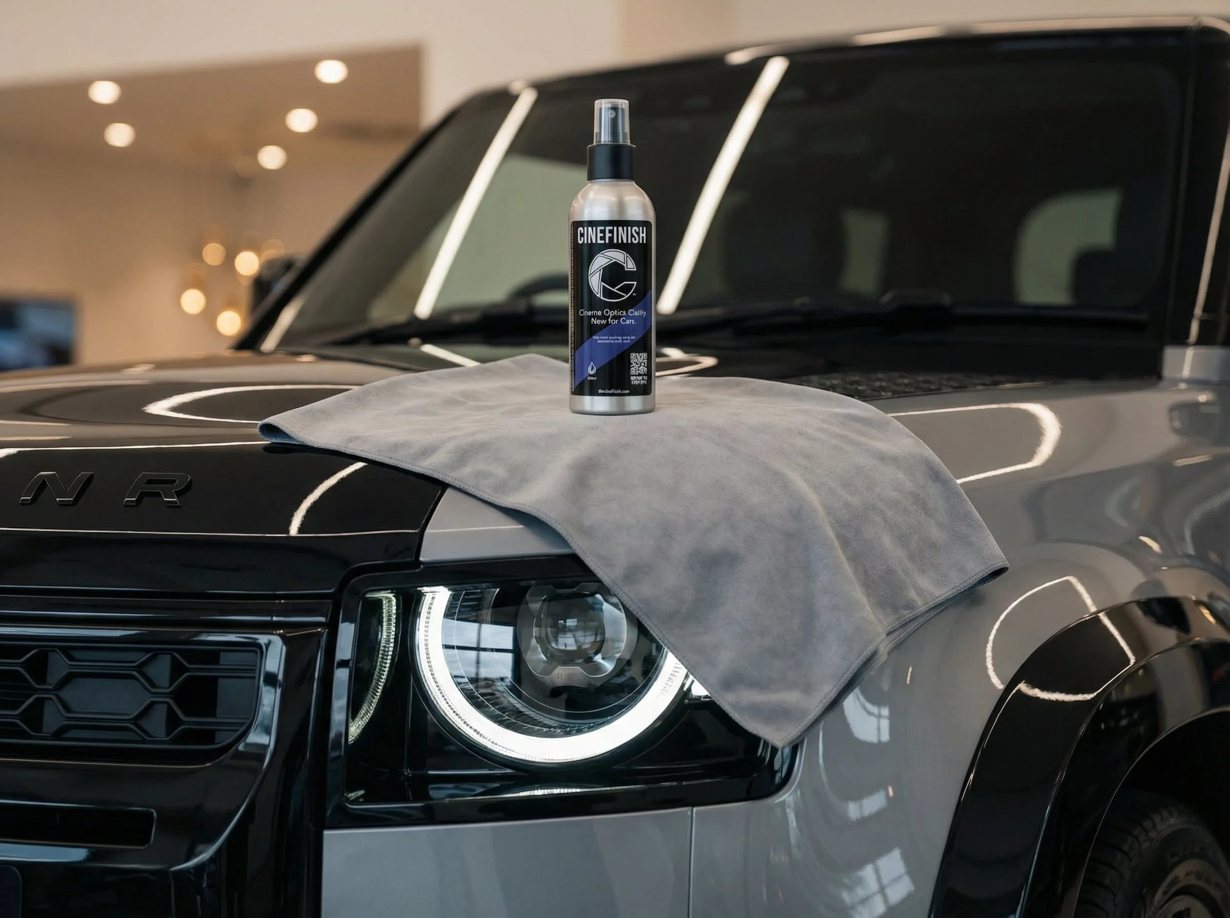 Clay bars are valid, necessary tools for extracting embedded tar and debris. But this is surgery, not finishing. It leaves friction residue and "detailing haze" that clouds the clear coat. CineFinish is the critical final step: it lifts the chemical debris left by the clay process, restoring the optic to a sterile, absolute zero.